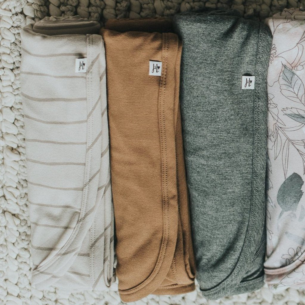 This baby blanket is made from the softest bamboo jersey fabric, with stretch for super comfort + breathability. It's perfect for swaddling, sleeping, cuddling, nursing, crawling on... everything! Color options available.