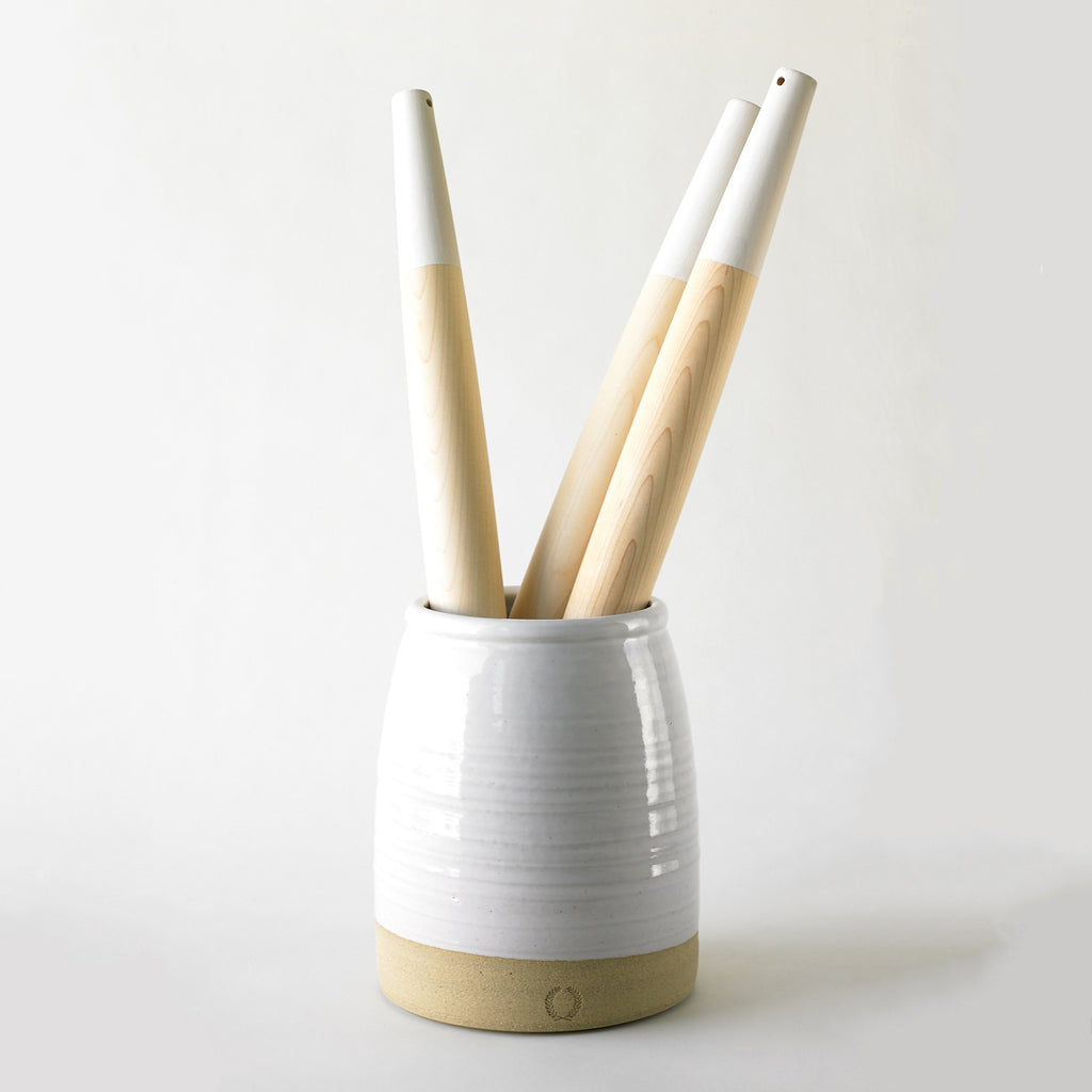 Sculptural + functional, the handcrafted French style baker's rolling pin is a smart + pretty addition to any kitchen. The wood is lathe-turned from local Vermont maple + one end is dipped in white lead-free glaze. Sold individually.