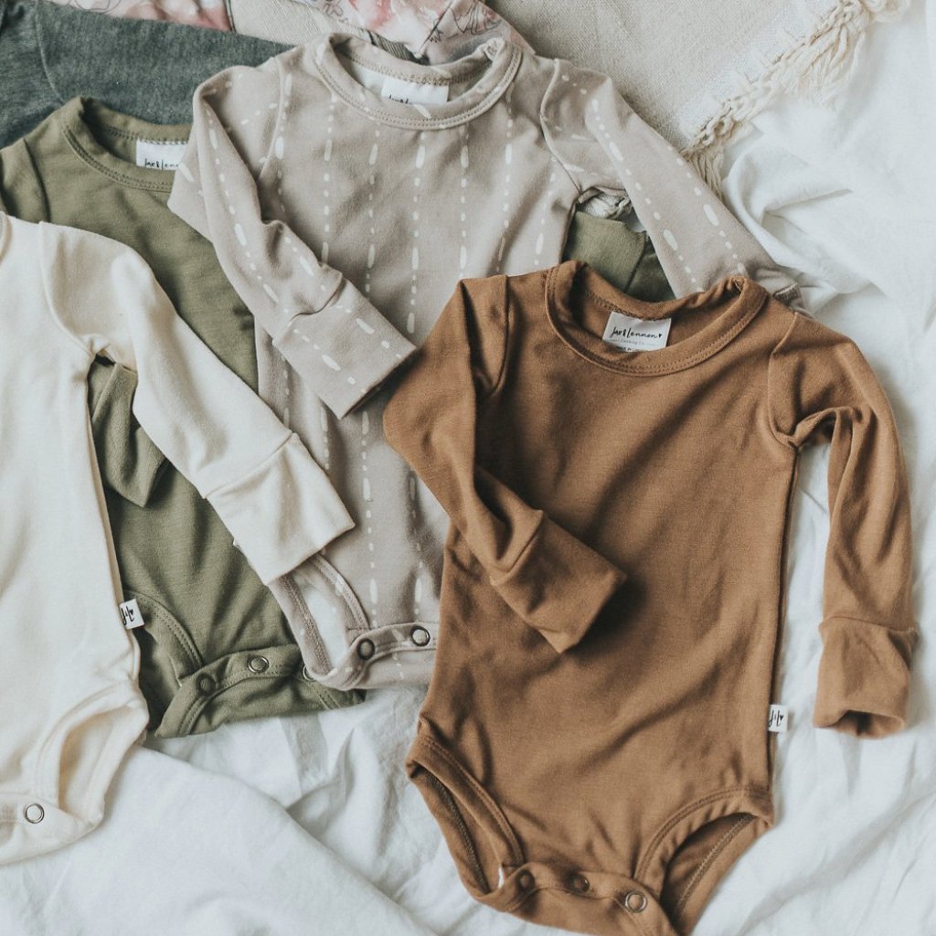 This baby onesie is made from the softest bamboo jersey fabric, with stretch for super comfort + the perfect fit. It has breathable long sleeves + reinforced snaps at the crotch. Color options available.